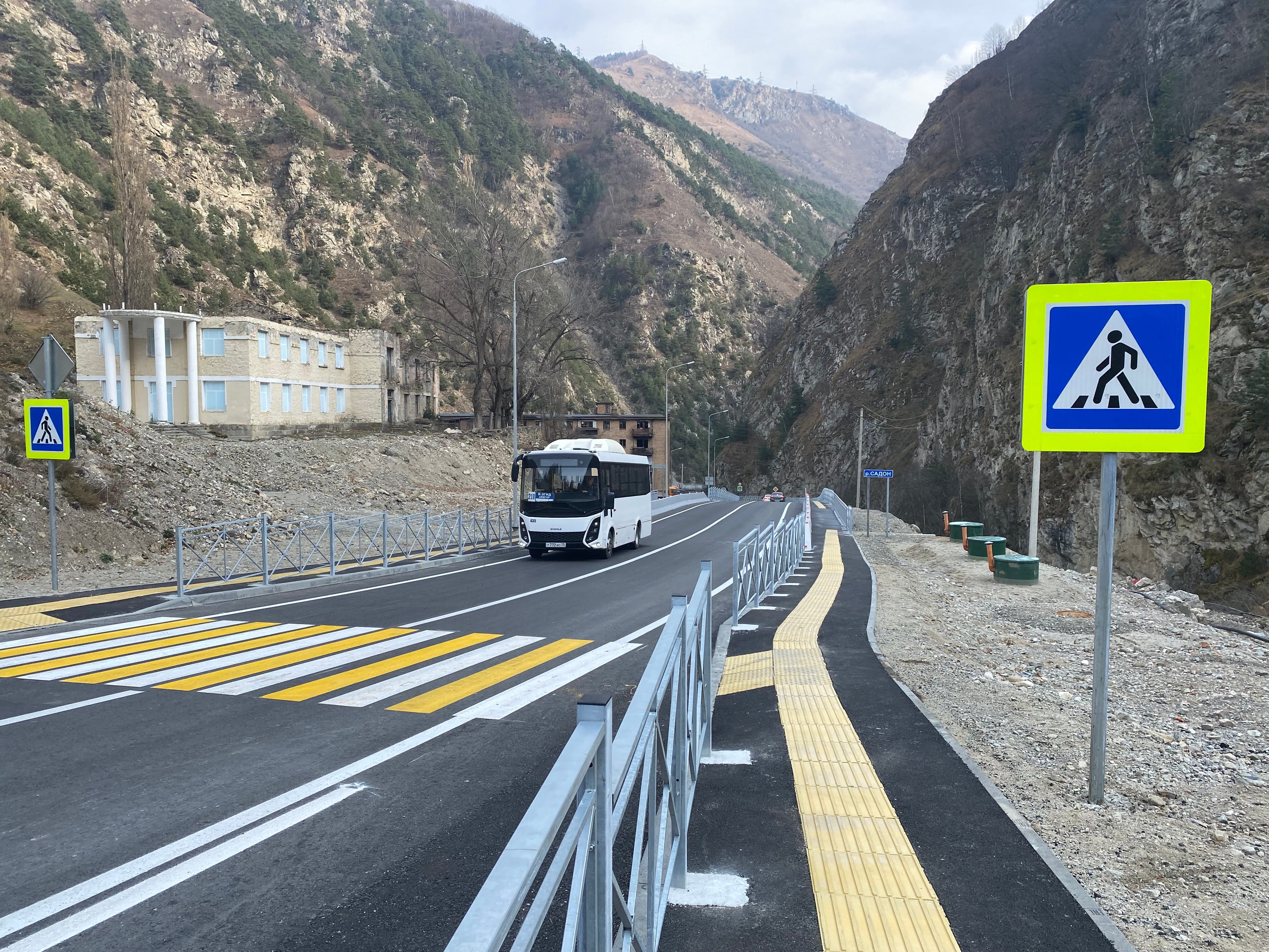 Кроме того, в населенных пунктах Садон, Галон и Курайтта, расположенных вдоль дороги, устроено искусственное освещение общей протяженностью 1,8 км. В высокогорных селениях построены тротуары с пандусами для маломобильных граждан, установлен бортовой камень, металлические перильные ограждения для защиты пешеходов от проезжающего транспорта, на проезжую часть нанесена горизонтальная дорожная разметка.