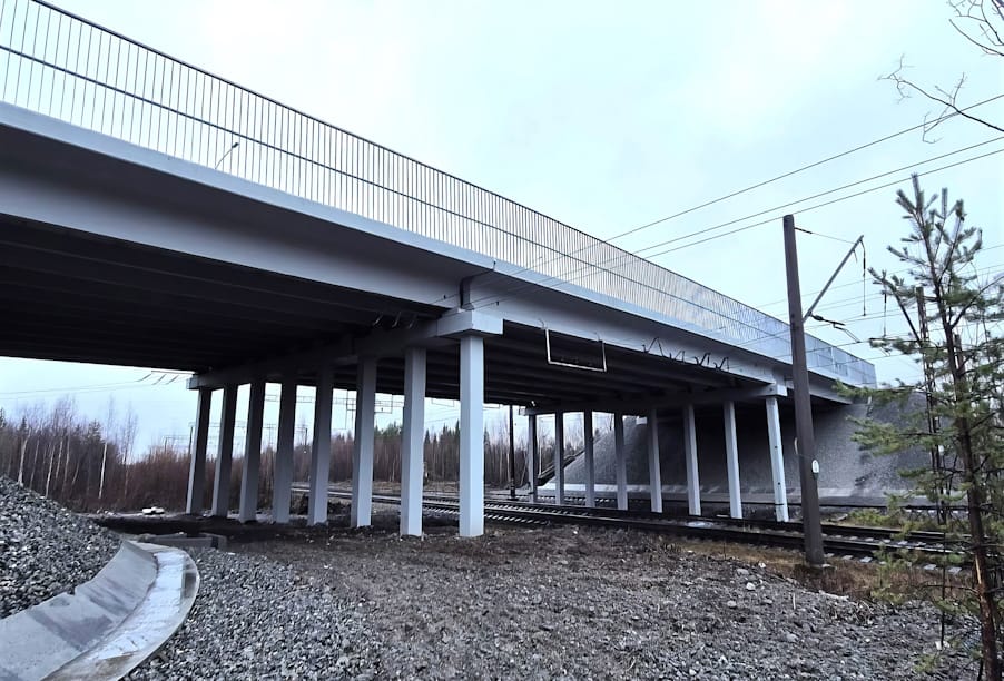 В процессе ремонта, стартовавшего в 2024 году, специалисты отремонтировали опоры и мостовые конструкции, устроили гидроизоляцию и новое асфальтобетонное покрытие. На объекте обновили барьерное ограждение, заменили лестничные сходы и перильные ограждения, установили очистные сооружения, устроили новые опоры наружного освещения.